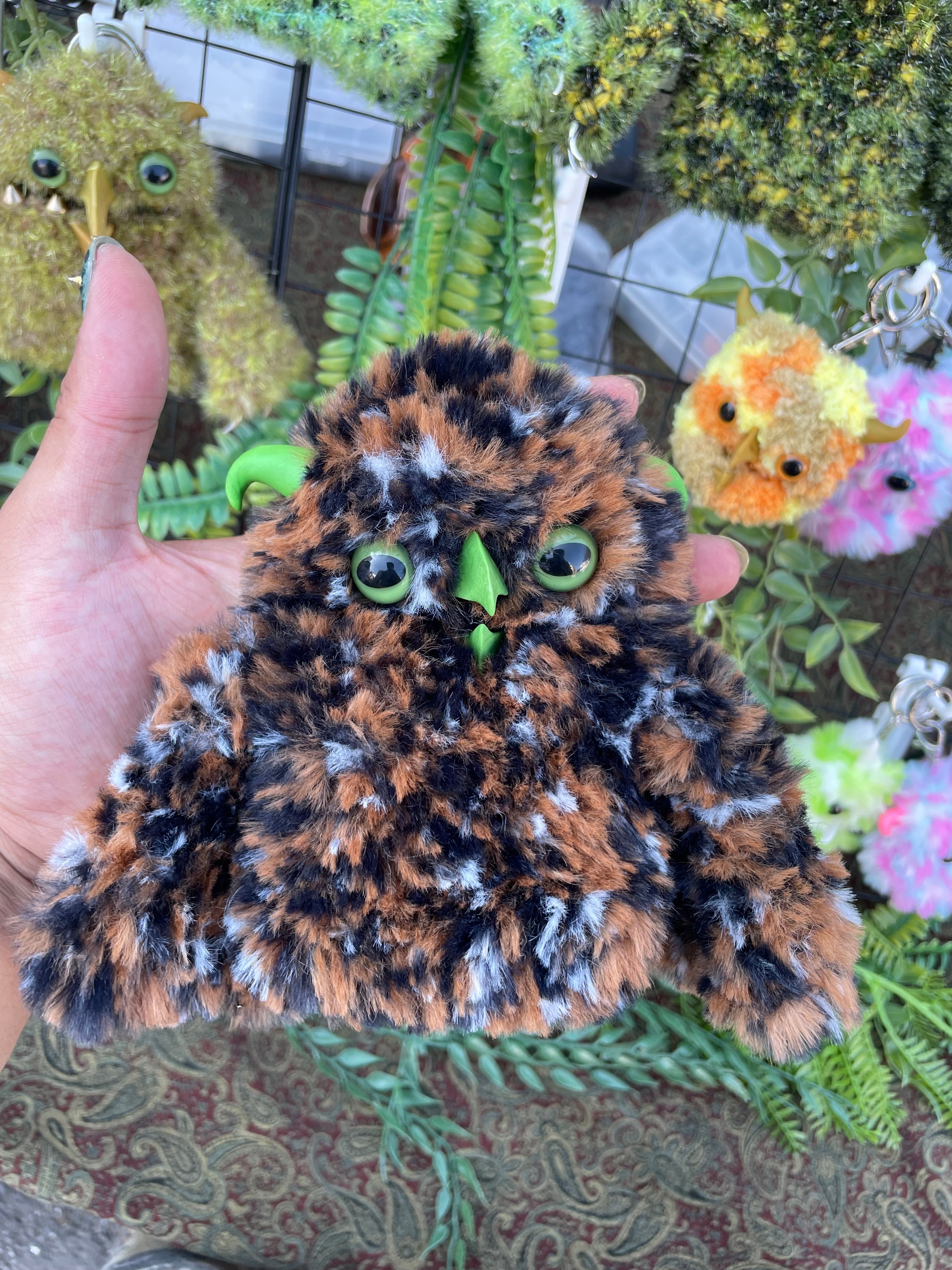 お腹の部分がポーチになっているデザインで、可愛さと実用性を兼ね備えています。このハンドメイド作品は、ツノやキバのパーツも一から丁寧に製作されており、細部にまでこだわった仕上がりになっています。普段使いはもちろん、友人へのプレゼントやコレクションアイテムとしても最適です!