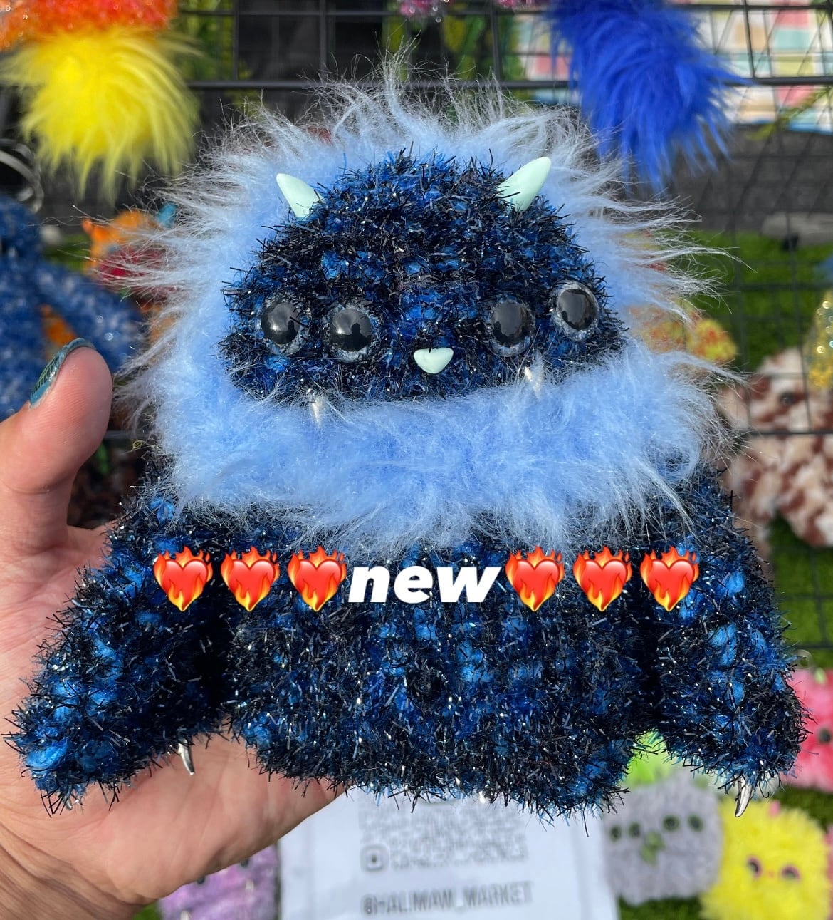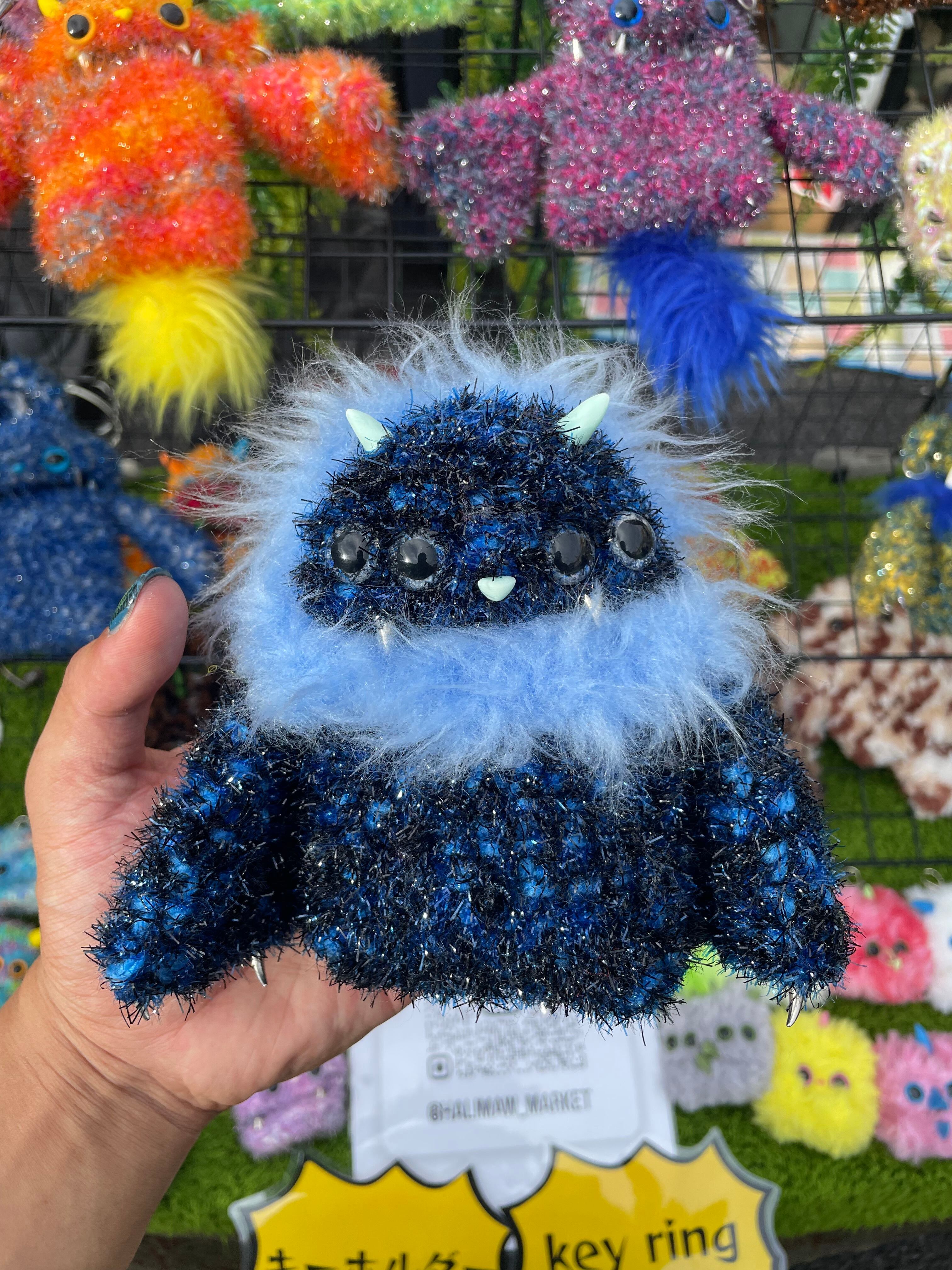 お腹の部分がポーチになっているデザインで、可愛さと実用性を兼ね備えています。このハンドメイド作品は、ツノやキバのパーツも一から丁寧に製作されており、細部にまでこだわった仕上がりになっています。普段使いはもちろん、友人へのプレゼントやコレクションアイテムとしても最適です!