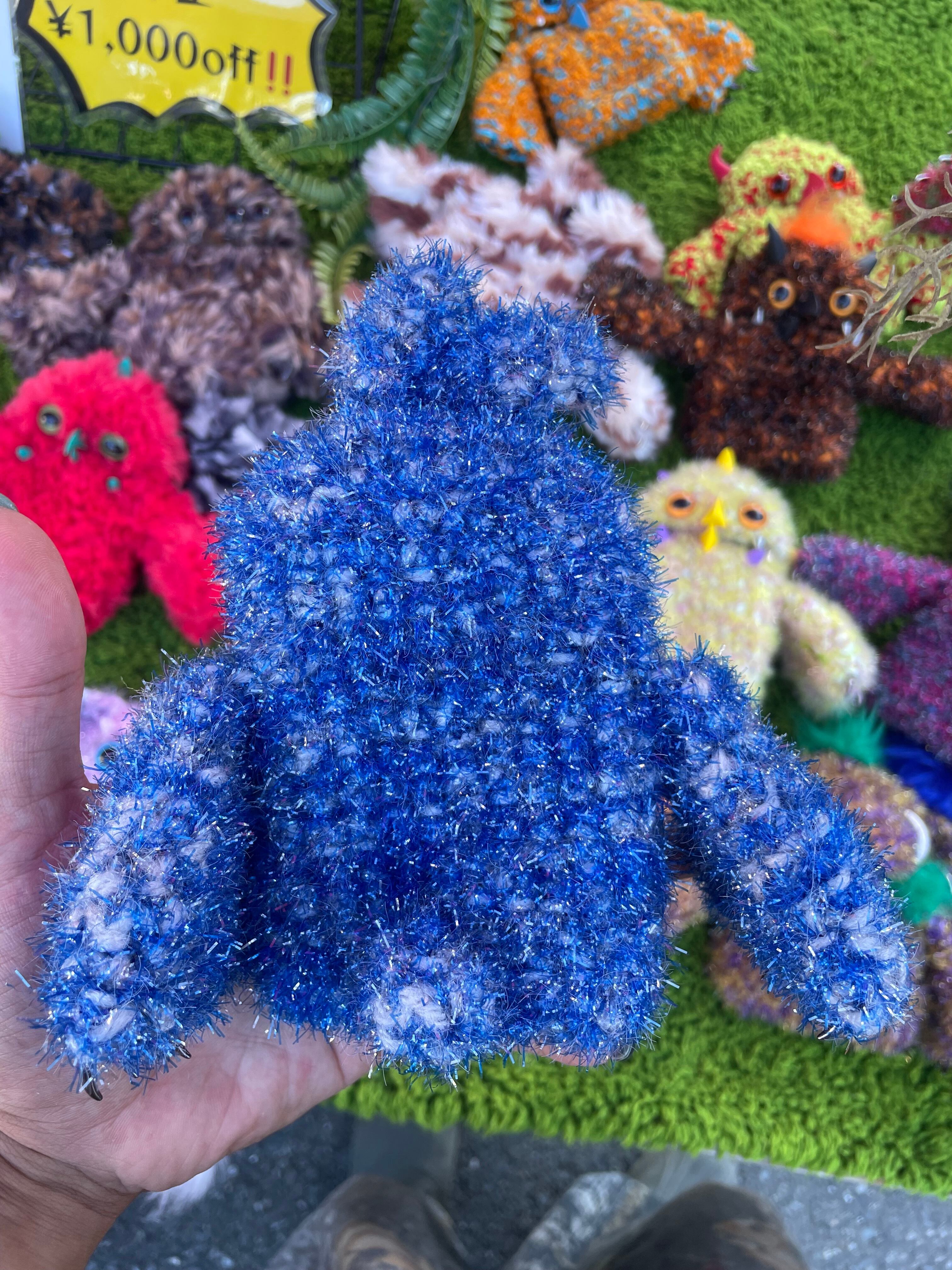 お腹の部分がポーチになっているデザインで、可愛さと実用性を兼ね備えています。このハンドメイド作品は、ツノやキバのパーツも一から丁寧に製作されており、細部にまでこだわった仕上がりになっています。普段使いはもちろん、友人へのプレゼントやコレクションアイテムとしても最適です!